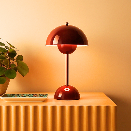 LunaGlow - Kabellose LED-Tischlampe im einzigartigen Retro-Schirmdesign